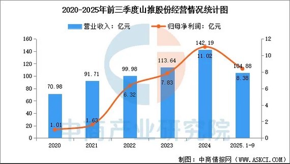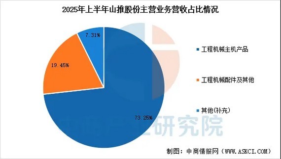 2025年前三季度,山推股份主营收入104.88亿元,同比上升2.36%,归母净利润8.38亿元,同比上升15.67%。上半年,公司工程机械主机产品收入51.30亿元,占比73.25%,工程机械配件及其他收入13.62亿元,占比19.45%。