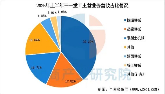 2025年前三季度,三一重工实现营业总收入661.04亿元,同比增长13.27%,归母净利润71.36亿元,同比增长46.58%。上半年,公司挖掘机械收入175.0亿元,占比39.29%,起重机械收入78.04亿元,占比17.52%,混凝土机械收入74.41亿元,占比16.71%,路面机械收入21.59亿元,占比4.85%,桩工机械收入13.41亿元,占比3.01%。