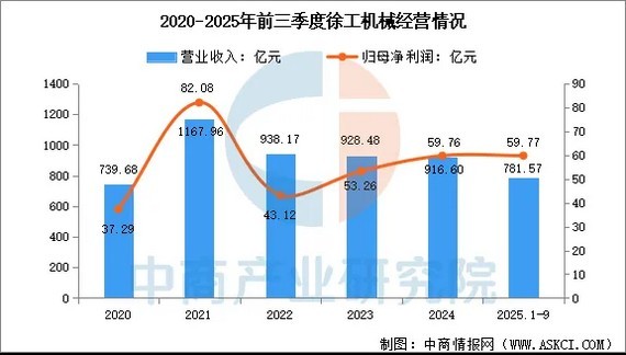2025年前三季度,中联重科实现营收371.56亿元,同比增长8.06%,归母净利润39.2亿元,同比增长24.89%。上半年,公司工程机械收入340.9亿元,占比91.74%